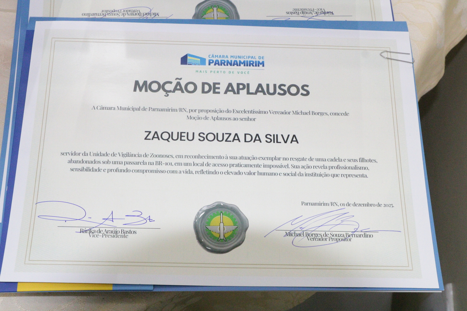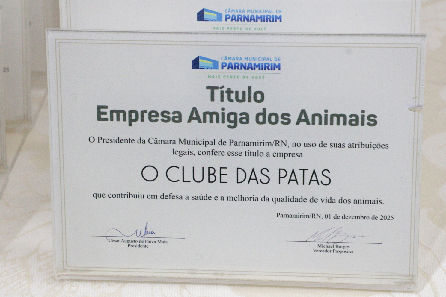 01.12.2025 | Sessão solene Empresa Amiga dos Animais, e Amigos dos Animais